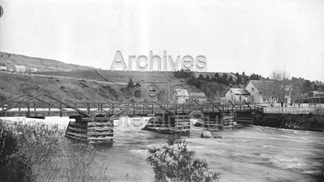 Le pont de bois enjambant la rivière Ouelle, remplacé en 1909 par un pont en fer