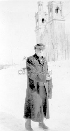 Le quêteux ti-Jean Gagnon près de l’église de Sainte-Anne à La Pocatière
